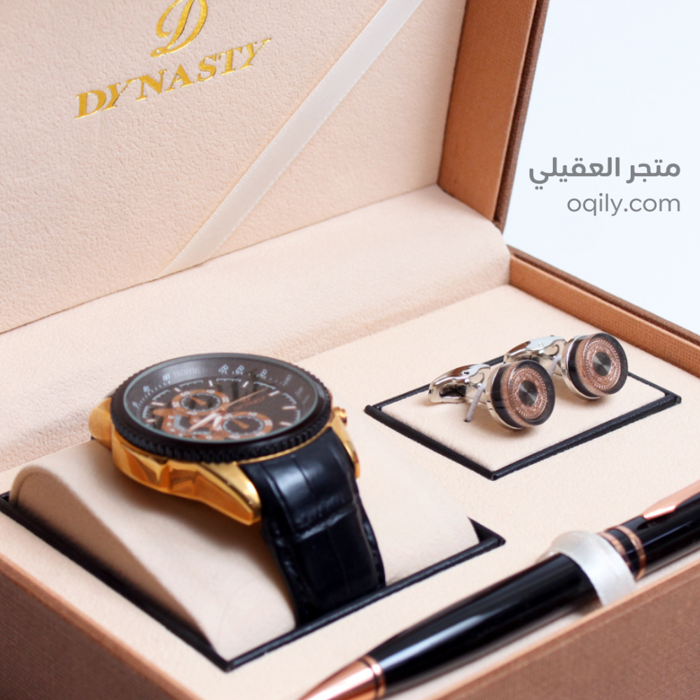 طقم رجالي مع كبك و قلم وساعة و حمالة مفاتيح مع علبة فخمة