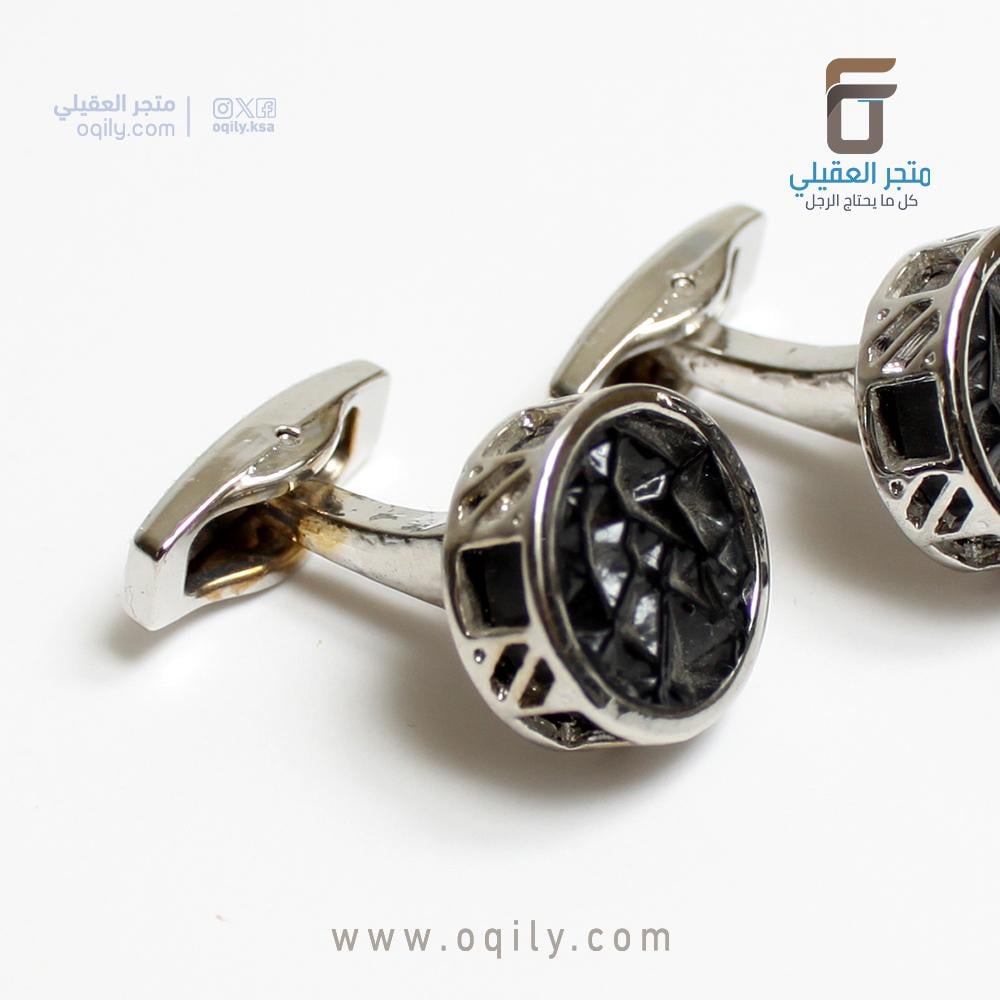 كبكات رجالية فضية "متجر العقيلي": أناقة الحجر الأسود بتصميم هندسي مذهل