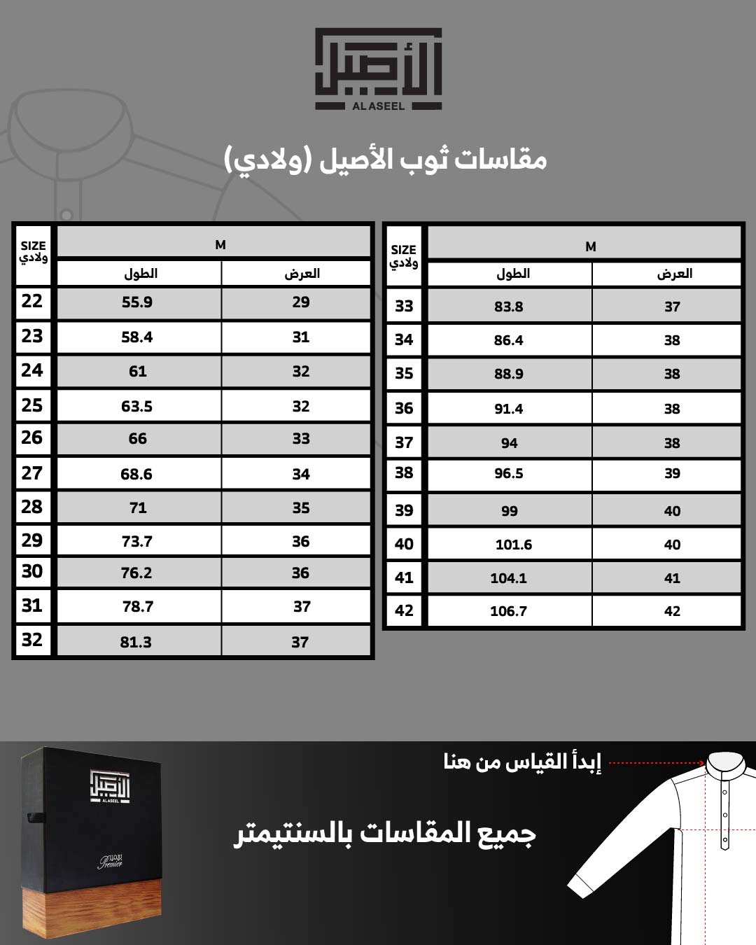 مقاسات ثوب الأصيل